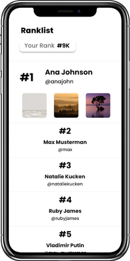 Create a profile, post pictures and see how you rank in the global Ranklist.