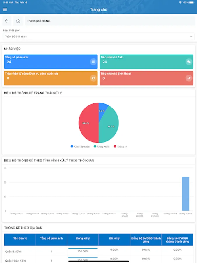 PAKN Hanoi application provides management and statistical functions to reflect recommendations: