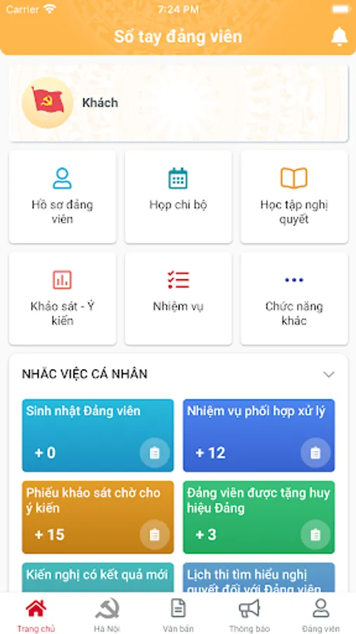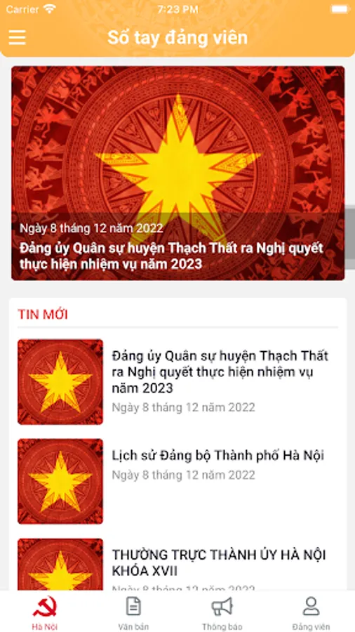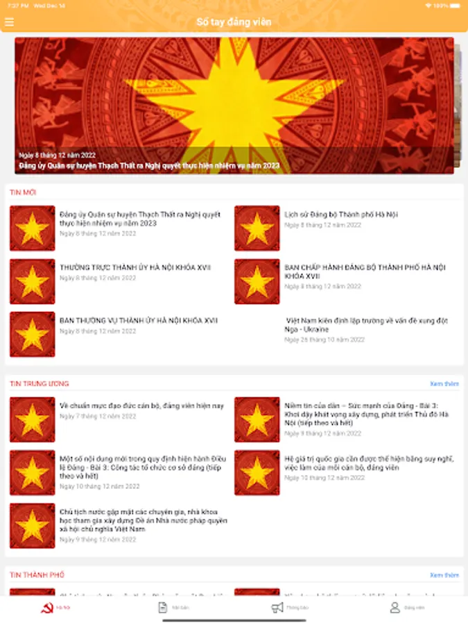 The Hanoi Party Member Handbook application was built with the goal of deploying action programs from the Provincial Party Committee and Party Committees to Party members quickly and in a timely manner to improve the activities of Party organizations under the Party. Ministry of Hanoi.