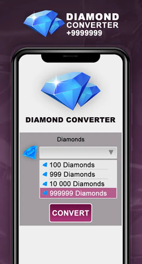 - "Diamond Converter for FreeFire" is only to help fan of game FF in calculating cost of the diamond need. NOT a cheat or hack to get free diamonds in free fire.