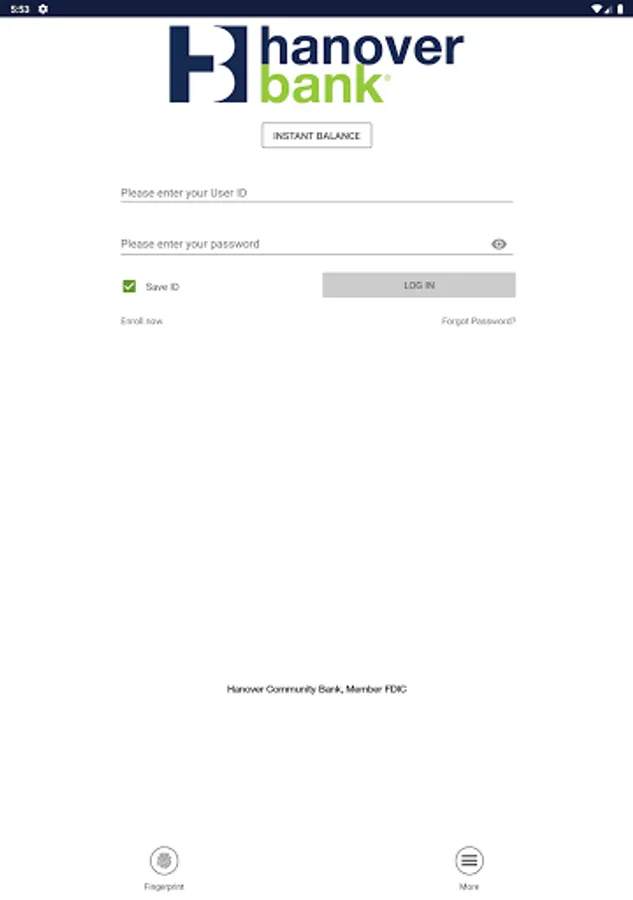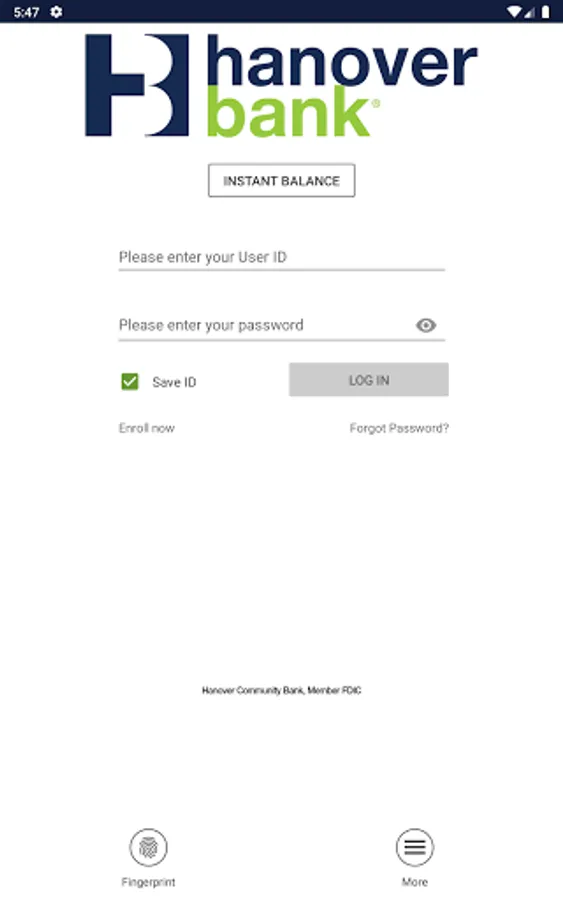 To gain access to your account information from your mobile device, you must be enrolled in Online Banking. Mobile Banking features the same level of security as our Online Banking. For more information, contact us at 877.548.8880 or go to www.hanoverbank.com to enroll.