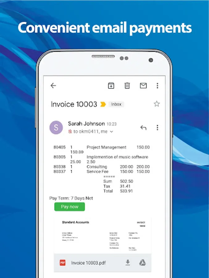 • Mobile – get a real-time overview of your invoicing and accounts from any device. Create an invoice and make payments on the go.