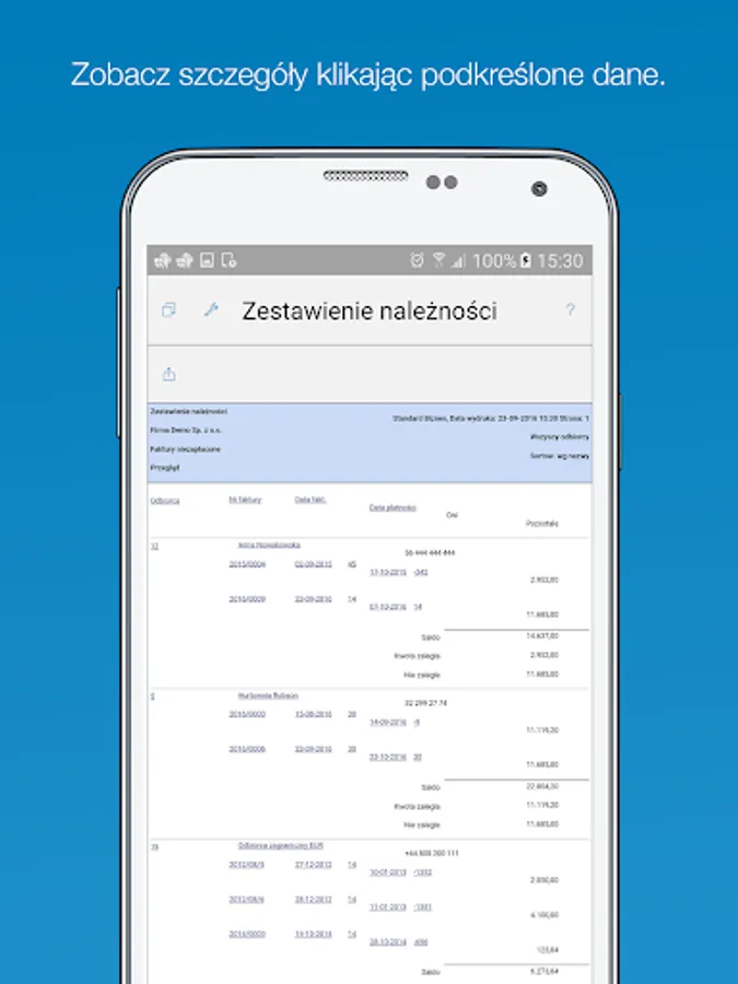 Mobility: secure access to data in real time from your phone, tablet or laptop. Expose the invoice and record payment on the spot;