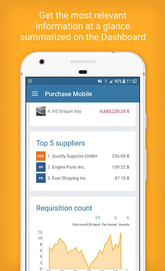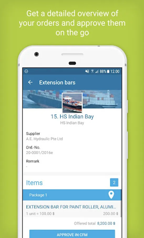 Due to the intuitive and self-explanatory design of the app you are able to get the most relevant information within seconds. Are you aware of your ship’s budget state? Want to get a quick overview of your OPEX? With CFM Purchase Mobile you are integrated into all processes and are always up-to-date. Quickly review and approve requirements and orders in real-time, make faster business decisions and collaborate with your colleagues regardless of location. Benefit from the deeply integrated environment of Cloud Purchase and CFM Purchase Mobile. As soon as an order is approved your colleagues can immediately continue working, resulting in better transparency, visibility and streamlined workflows.