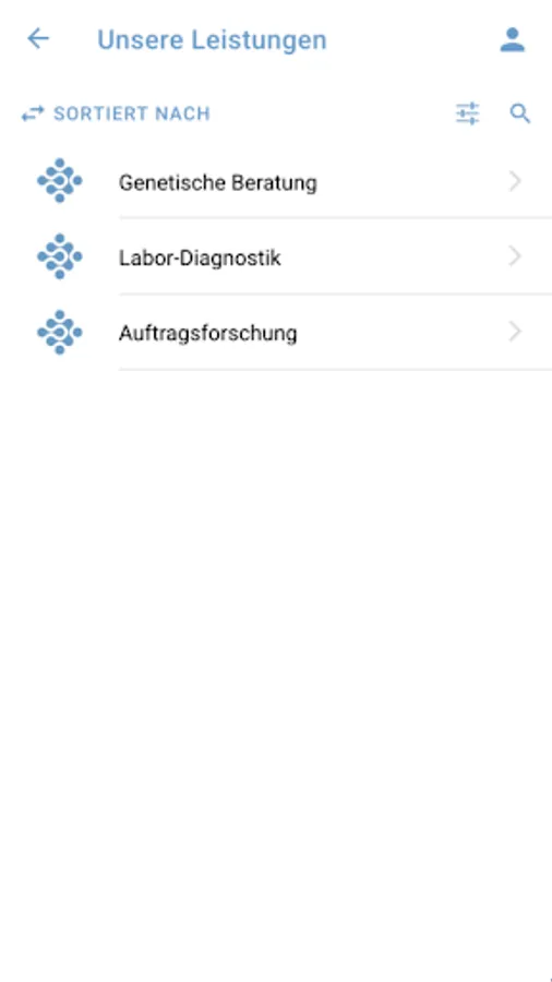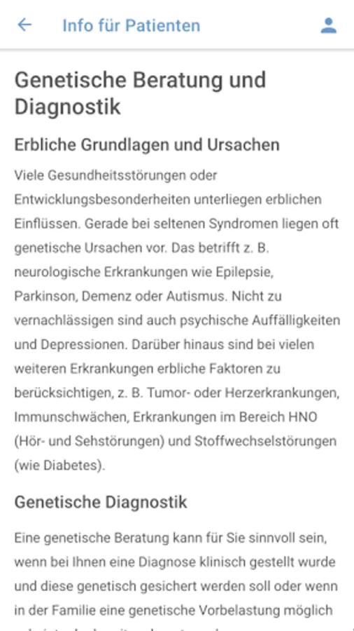 Information about counseling content and diagnostic possibilities for human genetic questions.