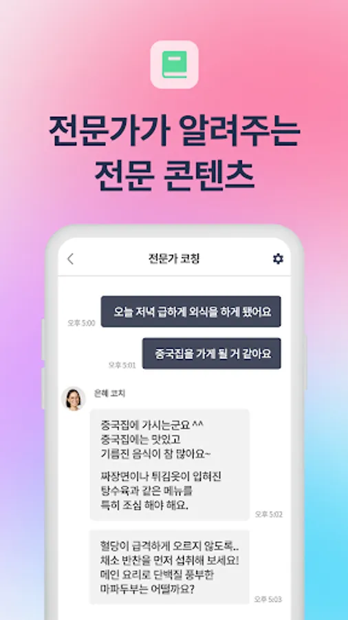 - What if you are busy at work? You can exchange health concerns with experts in real-time 1: 1 chat.