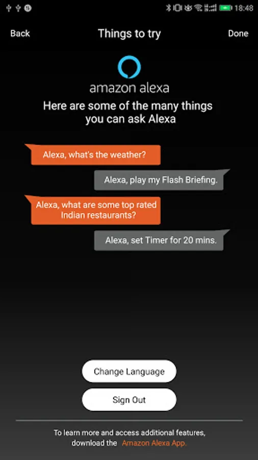 • Set up your Alexa-enabled devices, control or check status of your compatible smart lights, locks and thermostats at home or on the go