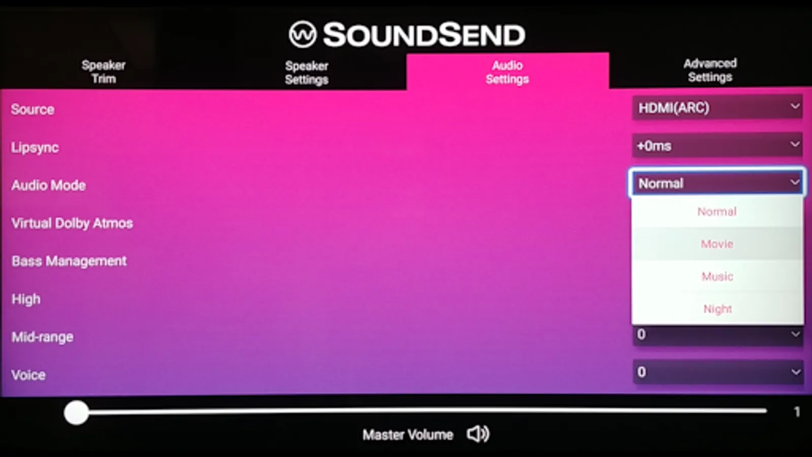 OPTIMIZE | Individual Speaker Trim, Multi-band EQ settings, and Normal/Movie/Music/Night processing modes are all at at your fingertips with simple, intuitive controls.