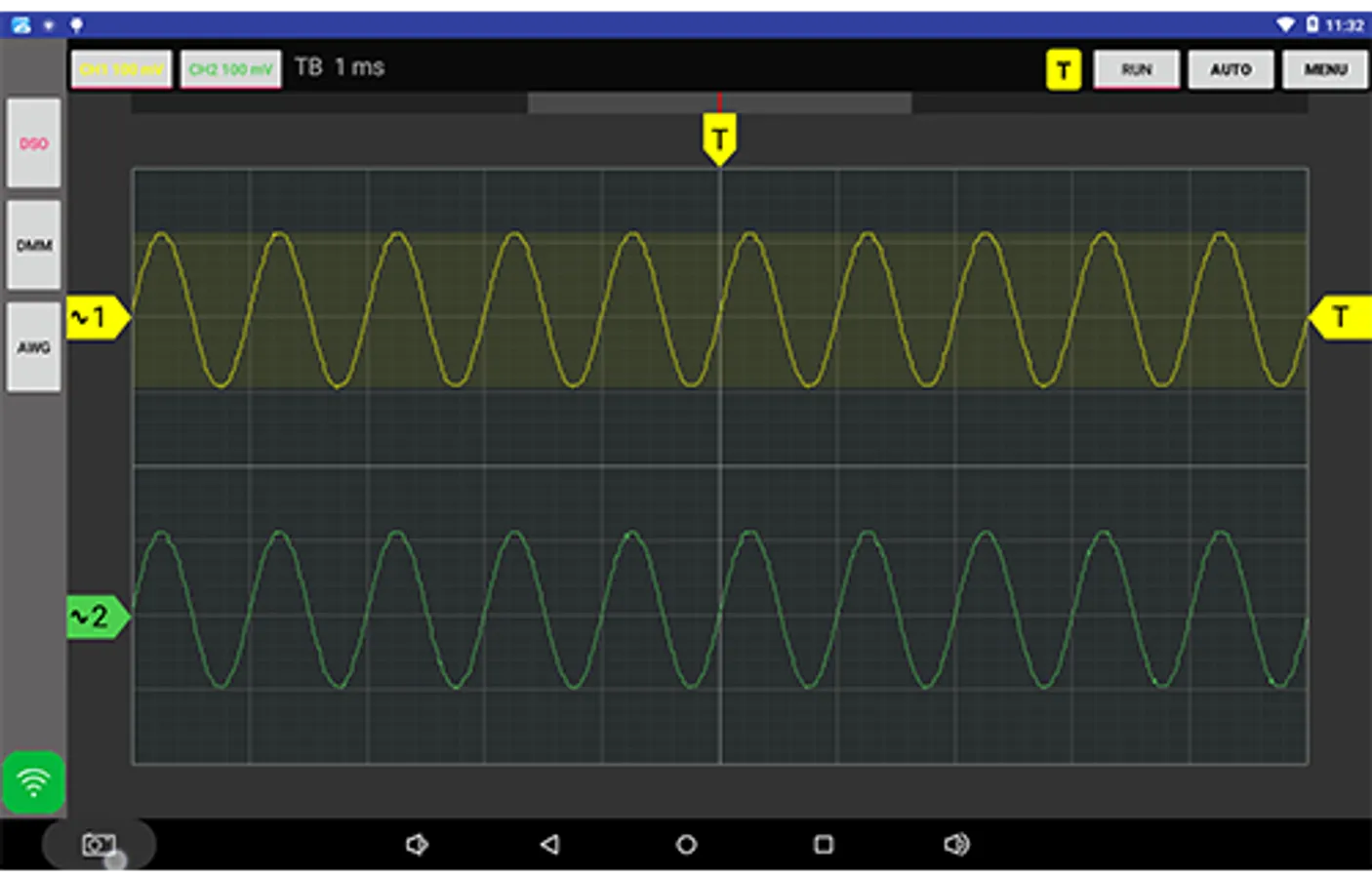 This is the Android app for the Hantek 2D72 connection product developed by Hantek. The function consists of three parts: an oscilloscope, a multimeter, and a signal source.
