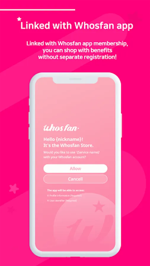 * The app only requires the access rights that are absolutely necessary for using its service. In the case of optional access rights, Whosfan Store asks for consent when using the feature. The app's service can still be used without granting the optional access rights.