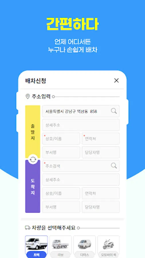 With the know-how accumulated for many years, Han Truck Co., Ltd. provides all types of vehicles from Yongdal, Labo, Damas, 1 ton, 2.5 ton, 3.5 ton, 4.5 ton, 5 ton, 11 ton, 18 ton, 25 ton, trailer and wing body refrigeration and freezing. Local delivery is possible. With this innovative system, you can check the status of your order in real time at the same time you place an order. You can inquire about fares with simple information such as departure and arrival locations without registering as a member. We will transport your cargo to the desired location quickly and safely at a low cost.