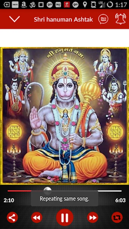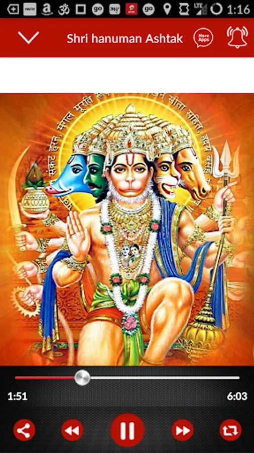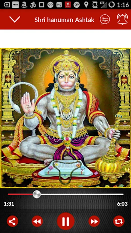 The devotional song that worships and praises Lord Hanuman. Listen to songs/Bhajan and sing praises to Lord Hanuman and seek his blessings. He is an ardent devotee of Lord Ram. He is known to be extremely powerful. He is the cental character in Ramayana
