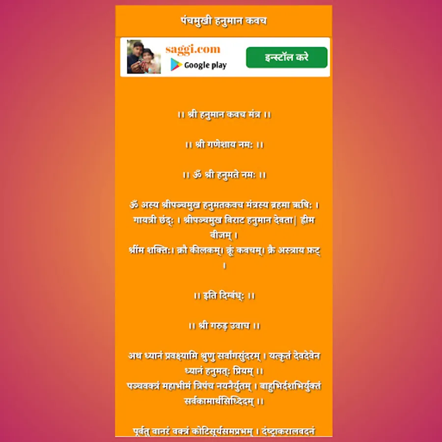 Hanuman is a very popular deity in India. Which is directly related to Ramayana which is a myth. Hanuman ji is a benevolent, auspicious deity. Symbol of strength, wisdom, courage, Hanuman ji is worshiped in every part of India. As Hanuman Ji is believed to be an early pleaser of the devotee and fulfill his wishes, and his worship is common, everyone worships him. We mainly include in our app how to worship Hanuman ji, Mantras, Hanuman Strot, Panchmukhi Hanuman Kavach, Hanuman Shabar Mantra, Hanuman Chalisa, Bajrang Baan, Hanuman Aarti 108 Names of Hanuman Ji, etc. is, which we hope will be very useful to you and guide you in your devotional practice.