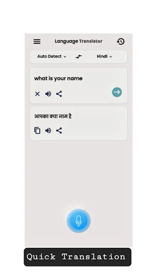 Translate.ai app is communicated for translating from English to Hindi language, English to Arabic, English to German and English to French. You can easily to speak and translate all language by live speak and translate app. This online world language traductor app allows you to copy, crop, and share notes simply from text to speak translation into all langue by using speak and voice translate app now.