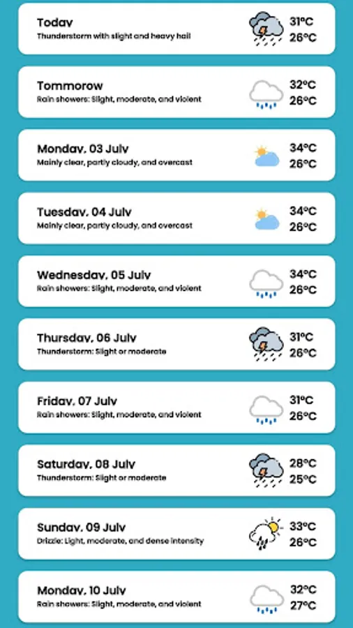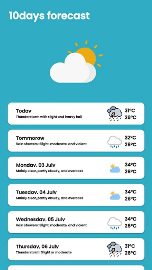 Detailed local weather forecast and global weather forecast is provided by the Weather Forecast App, the app provides current temperature in Celsius and Fahrenheit, sunrise and sunset times according to the city time zone.