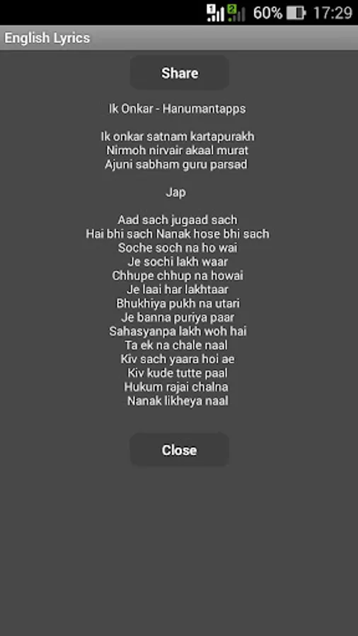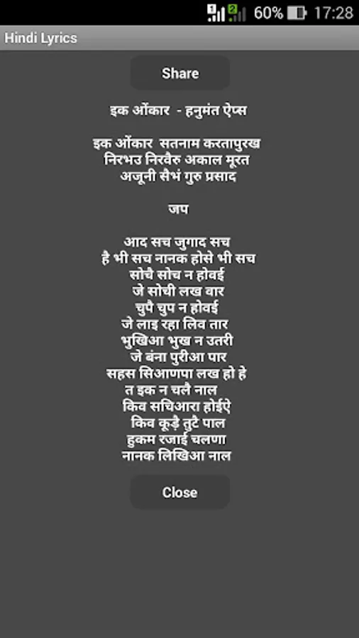 This app contain good quality ek onkar satnam audio and lyrics in Hindi and English are free ones you download this app you don't need internet connection.