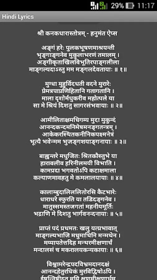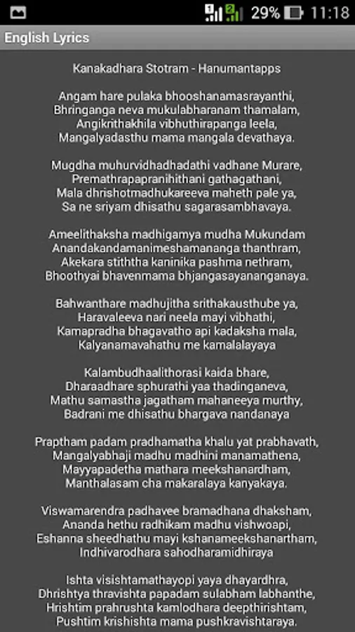 kanakadhara stotram app contain good quality audio and lyrics in Hindi and English are free ones you download this app you don't need internet connection.
