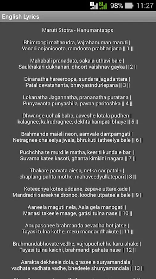 This app contain good quality Panchmukhi Hanuman Stotra audio and lyrics in Hindi and English are free ones you download this app you don't need internet connection.
