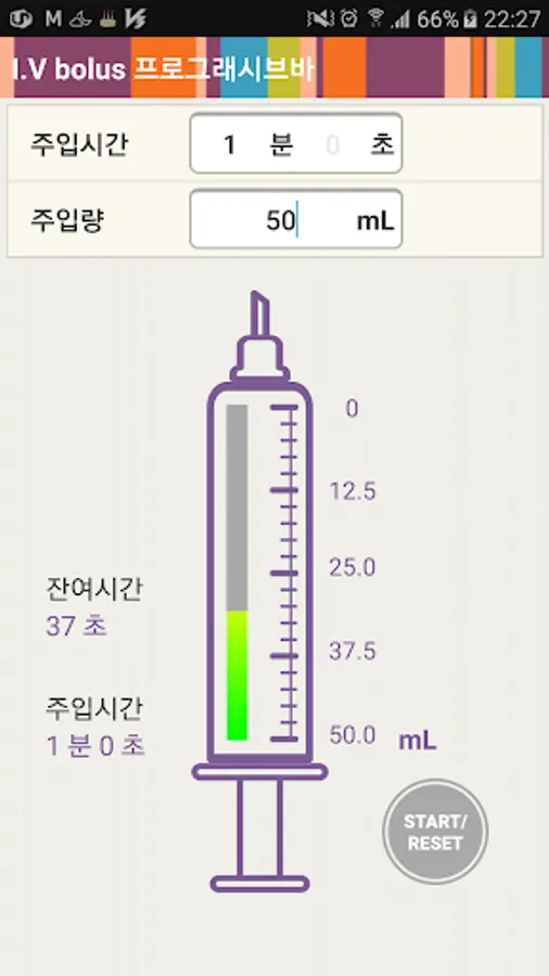 우측에는 주입시간과 progressive bar로 진행에 따른 잔여시간이 표시됩니다