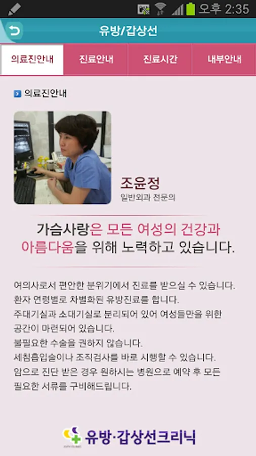 2. Breast / Thyroid: You can see the medical staff of the city breast, the medical examination course, the examination time and the inside of the hospital.