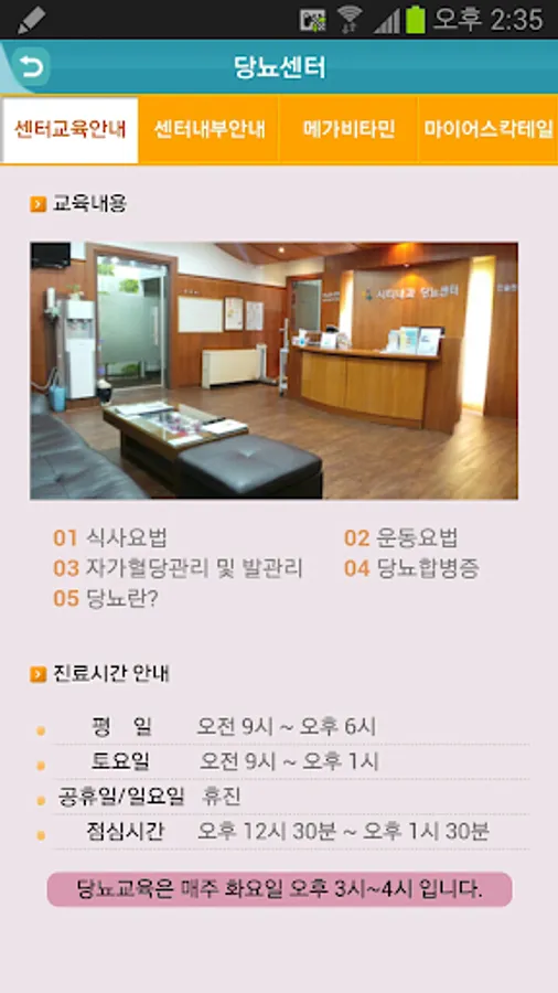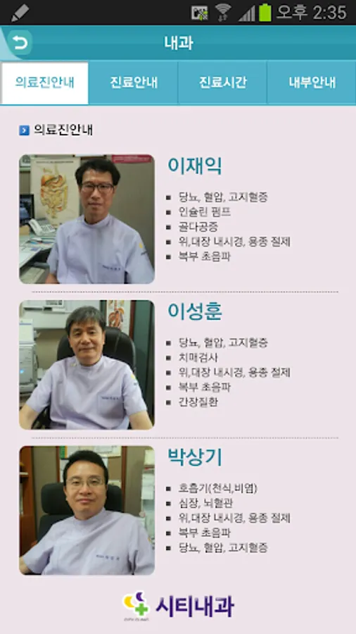 1. Internal medicine: You can check the medical staff, the medical examination course, the examination hours and the inside of the hospital.