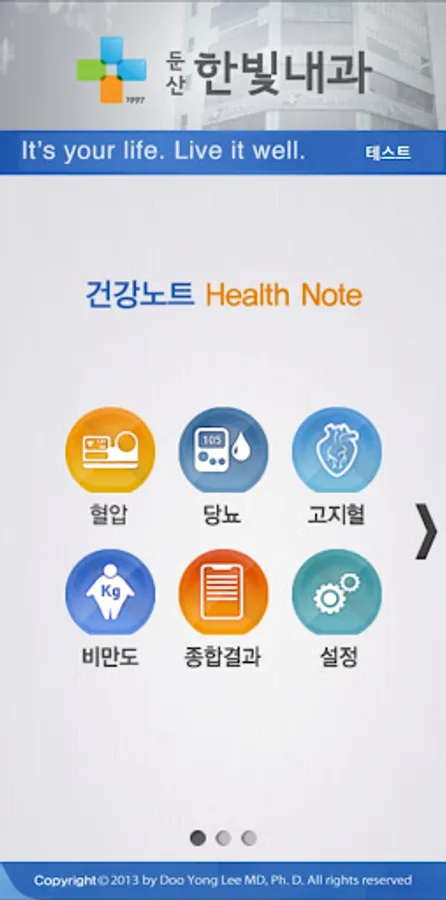 The Hanbit Internal Medicine app provides menus optimized for individual users and health care contents tailored to each individual's characteristics.