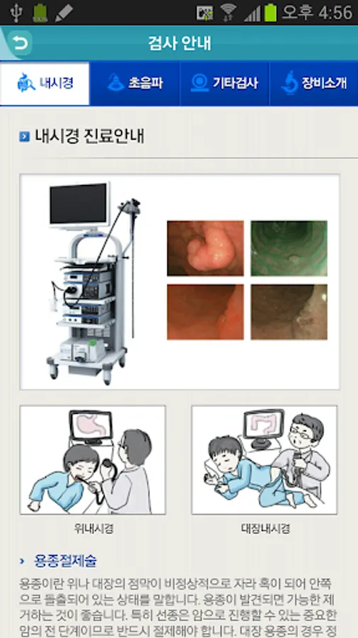 4. Examination Guide: Introduces endoscopy, ultrasound, and other examinations, and introduces the equipment that Hanbit Internal Medicine has.