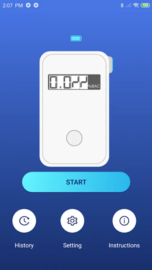 Description: exhaled gas alcohol content detector, connected with the device through mobile phone Bluetooth.