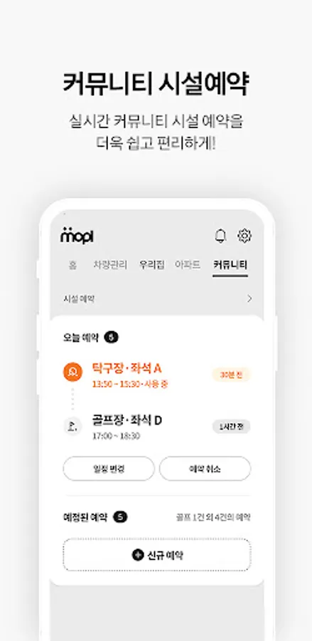 You can save unnecessary time by real-time reservations for community facilities (gym, indoor golf course, reading room, etc.) within the complex.
