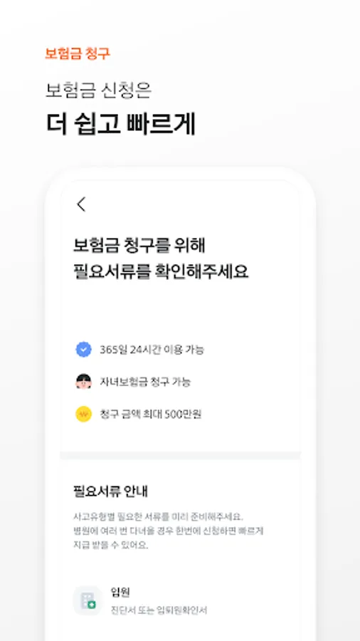 - You can quickly apply for insurance money and check the progress with just a picture of the receipt.