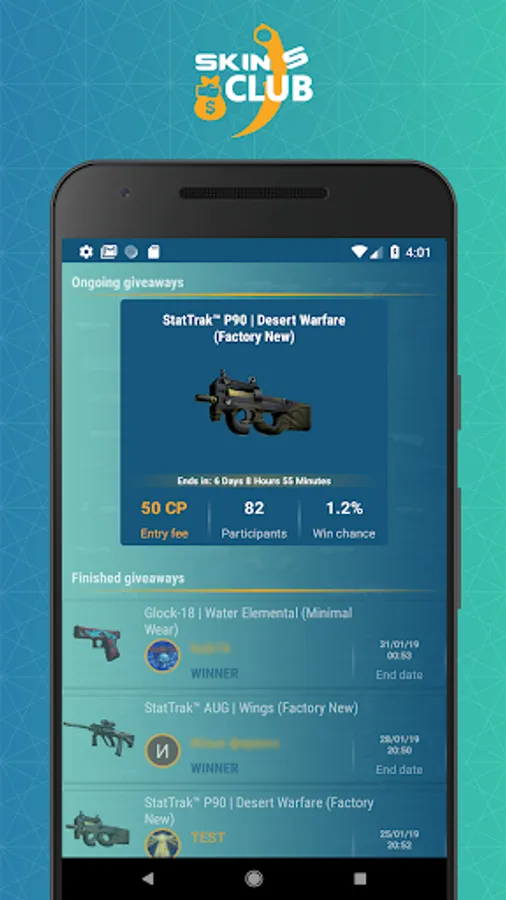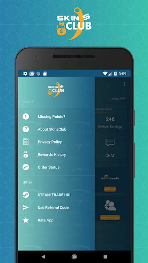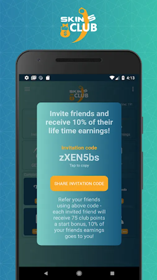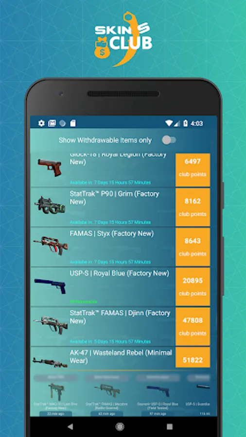 SkinsClub is a mobile application that allows their users to collect club points by playing awesome mobile games which are part of offers provided by the third party services. The range of apps and games to choose from is updated daily, so each day you can find new awesome apps to try and get more and more club points in same time! No gambling or random case opening, you always know what you can get!