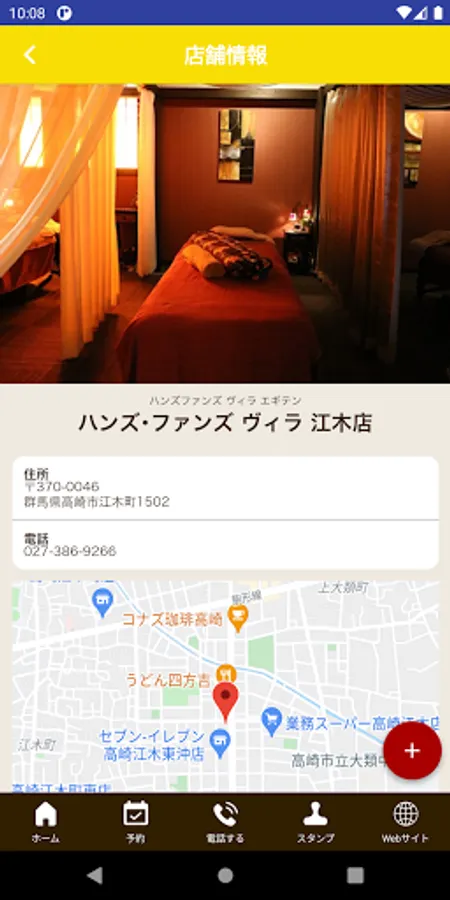 The map of the store is displayed and it is linked with the map app, so you can easily find it even when you visit the store for the first time.