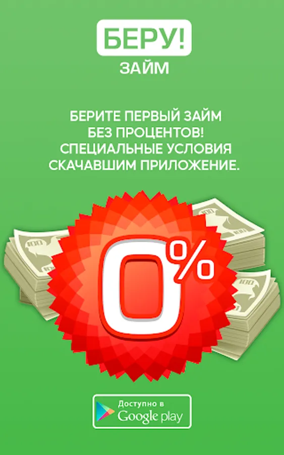 By downloading I take a loan, you are endowed with the ability to take 0% loans online in 5 minutes! Immediately after opening the application the probability of getting an online loan increases from 30% to 98%, even if the credit history is not perfect and there is no permanent source of income.