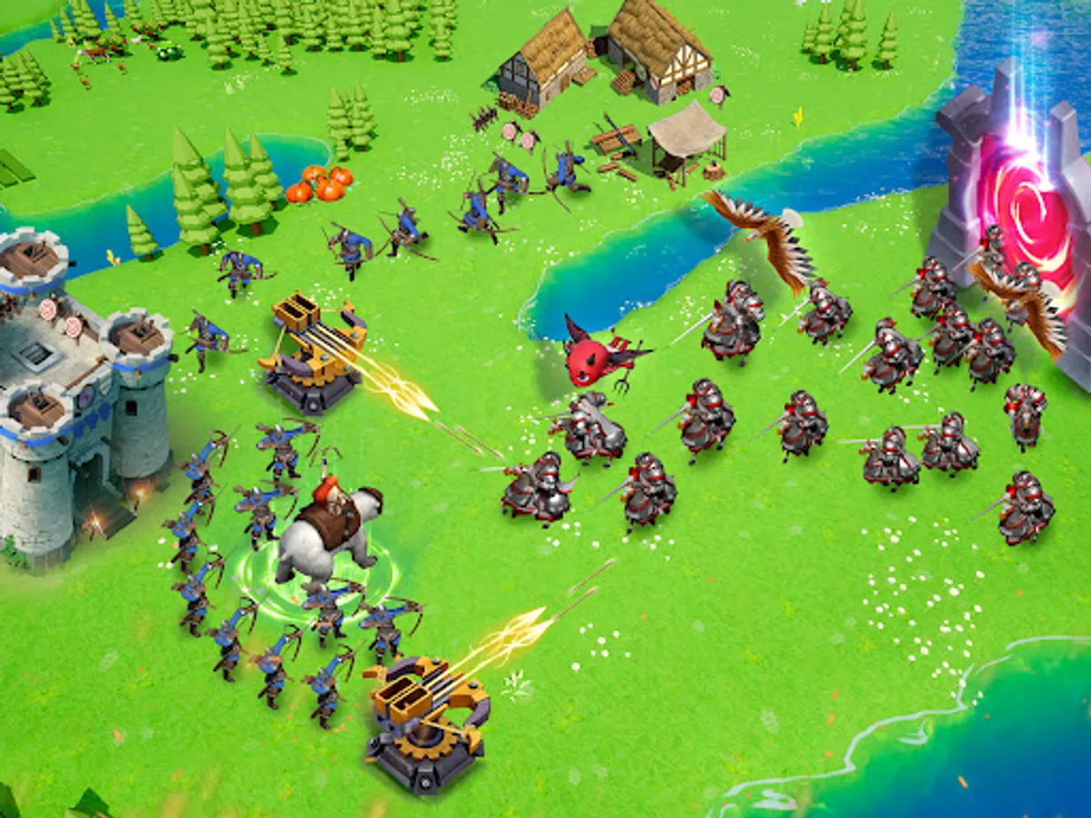 On a world map, unleash RTS (Real-Time Strategy) battles, leveraging the unique terrain features of each vast region for strategic layouts. Seize resources, engage in real-time combat with countless players, and dominate the battlefield!