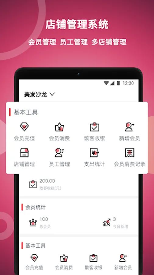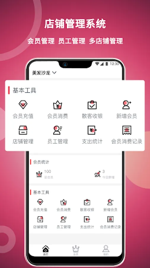 A free membership management software specially designed for small and medium-sized barber shops, supports mobile terminals and computer terminals, such as various styling studios, small barber salons, etc., supports online membership management, store management, employee management, online accounting, data Statistics, data export and other functions allow you to easily manage your store.