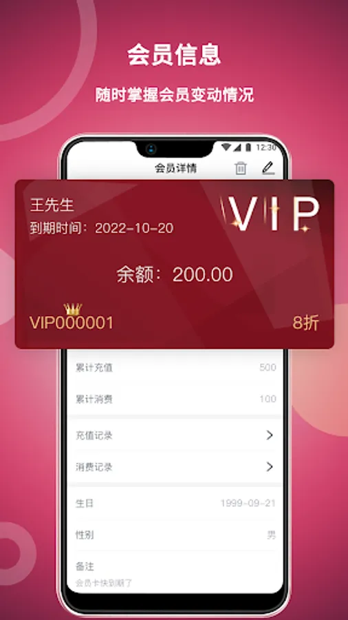 [Member Management]: Comprehensive information entry such as member name, phone number, discount, birthday, etc.