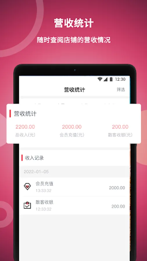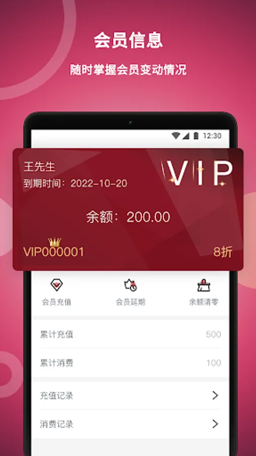 【Online Bookkeeping】: Support online record of member recharge, member consumption and individual cashier.