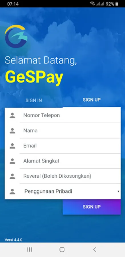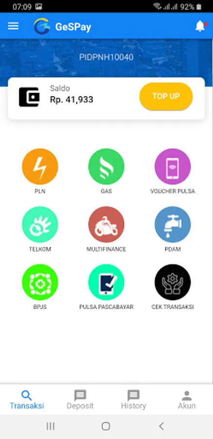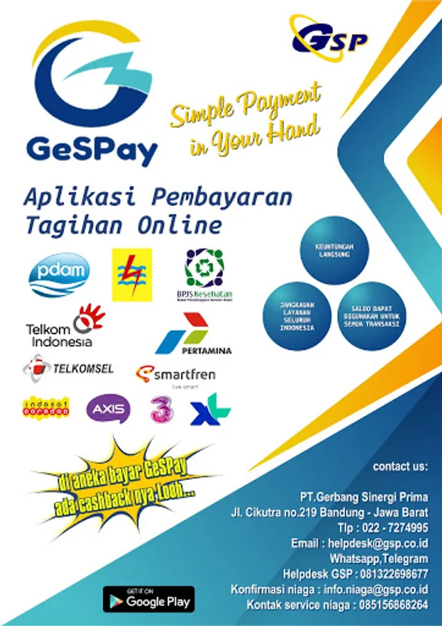 GeSPay is an Android-based mobile application that can be used as a medium for purchasing electricity pulses, cellular phones, gas, and internet packages. And you can also make payment transactions for electricity bills, PDAM, BPJS and installment loans from various providers.