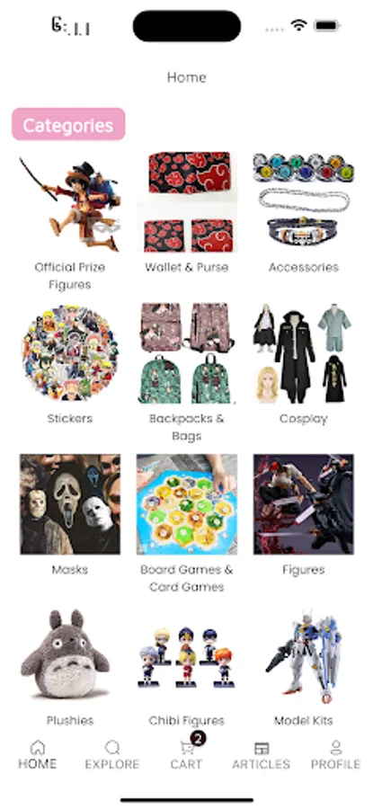 We have a wide varieties of items starting from Figures, Model Kits, Clothings, Masks, Board Games, all sorts of Accessories & Cosplay products.