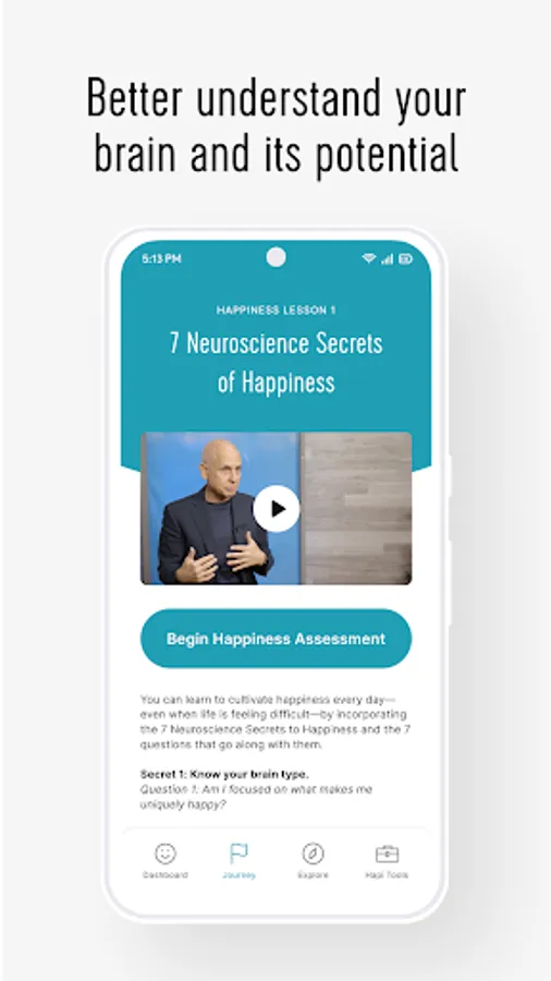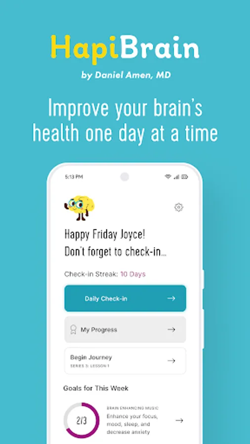 HapiBrain helps you develop the neuroscience habits of happiness. This fun, life-changing app developed by psychiatrist and brain health expert Daniel Amen, MD offers assessment tools, daily check-ins, positivity bias training, hypnosis, meditations, brain enhancing music and exercises to kill the ANTs (automatic negative thoughts), plus much more to help you have a better brain and a happier life! It includes a 30-day happiness journey that increased happiness scores, energy, and memory 30% in people who completed it.