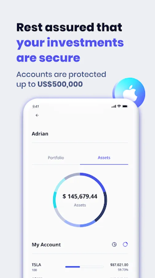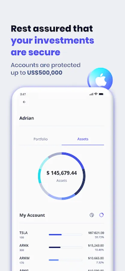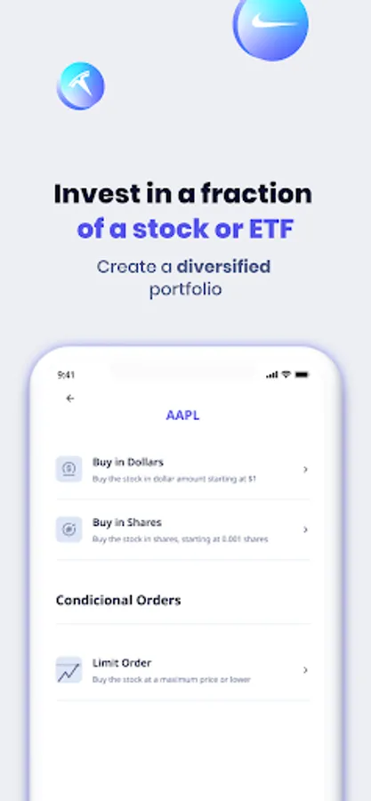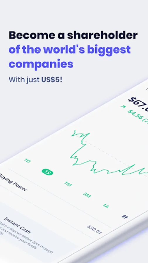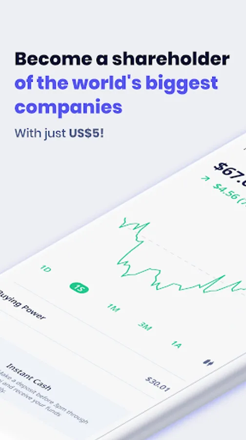 Start your investment portfolio with the amount you want. You can invest from US$5 in fractional shares or ETFs.