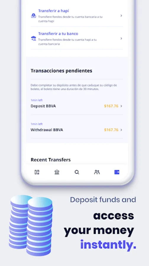 You can transfer directly from the app and access your funds instantly.