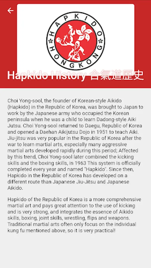 User can get all information like organization structure, on going event, and user can submit form contact us when need more information about martial arts at Hapkido Hong Kong