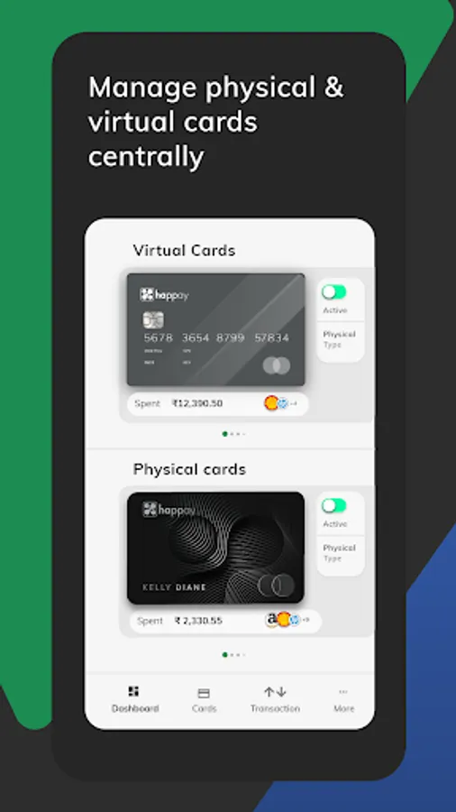 Happay card is the control center for all your business spends. The card platform gives a line for your business, empowers teams with physical & virtual cards, plugs leaks with spend controls, and improves visibility with finance app integrations.