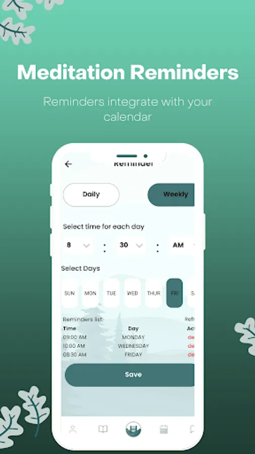 You can even set daily and weekly meditation reminders that integrate with your calendar, directly from within the app!
