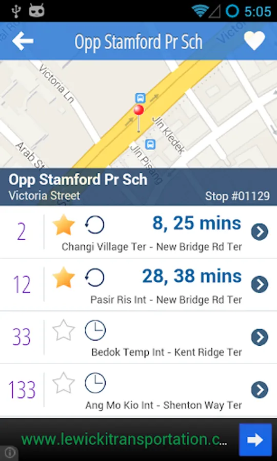 bus@sg also shows you full route schedules, including first bus time, last bus time, and frequency.