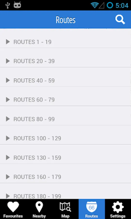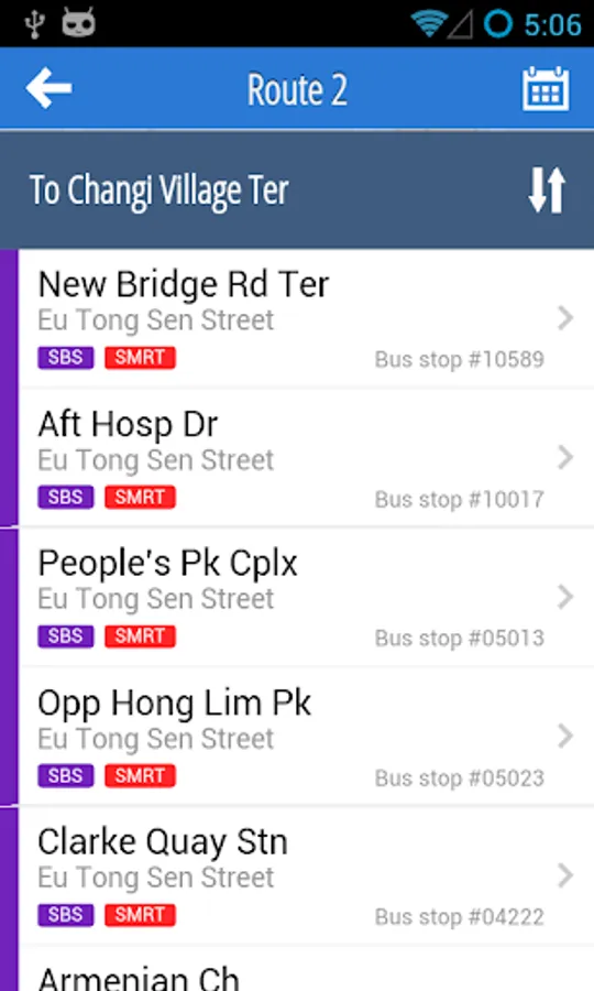 In the routes page you can see all the bus routes in Singapore, and can navigate through the list of stops for each route.