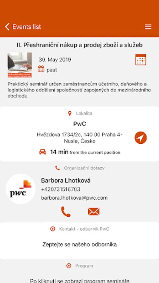 PwC Events CZ is an app for event attendees and event organizers of event management platform Happenee. It helps visitors find all important information like the Program of their happenings, allows to communicate with organizers, vote in realtime, find the way to your events, and other important details about the happening. It also keeps you always up to date about the event.