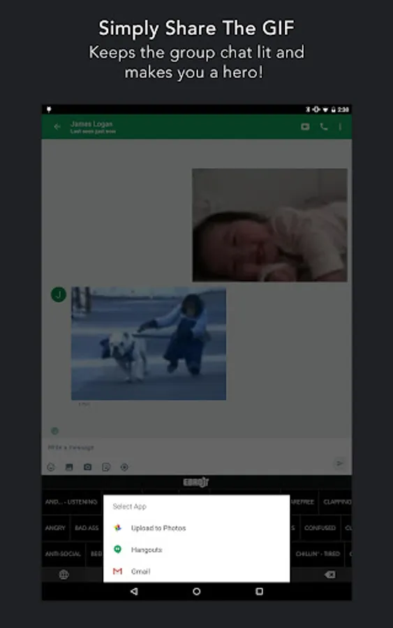 - UPLOAD: Make it your own. You can upload your own favorite GIFs at www.ebrojiapp.com!