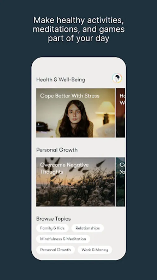 - Access products with tracks featuring evidence-based activities, games, meditations, and more